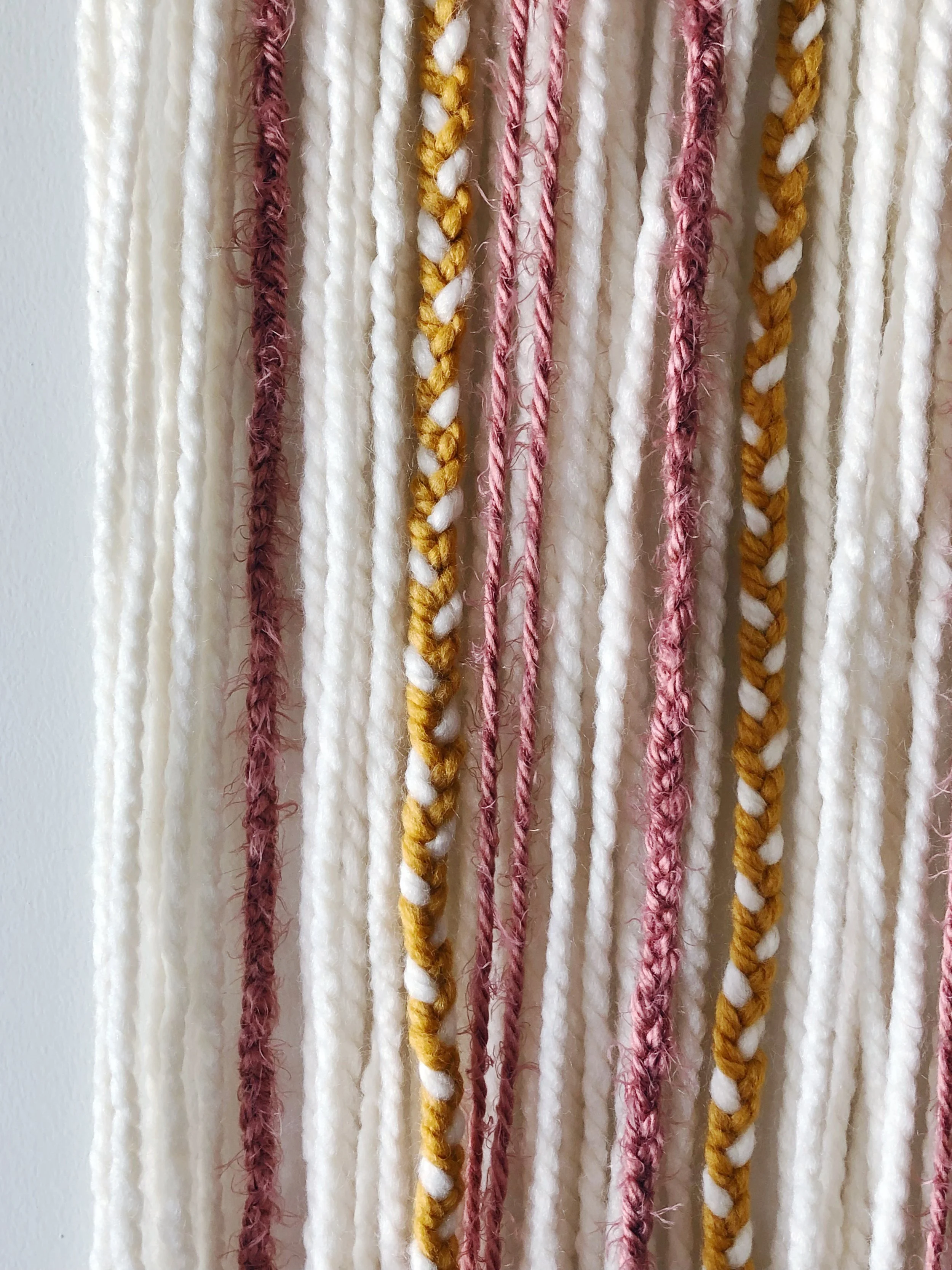 Optional: include braids or other designs throughout to add some depth. I only braided the colored yarn to make them pop more.